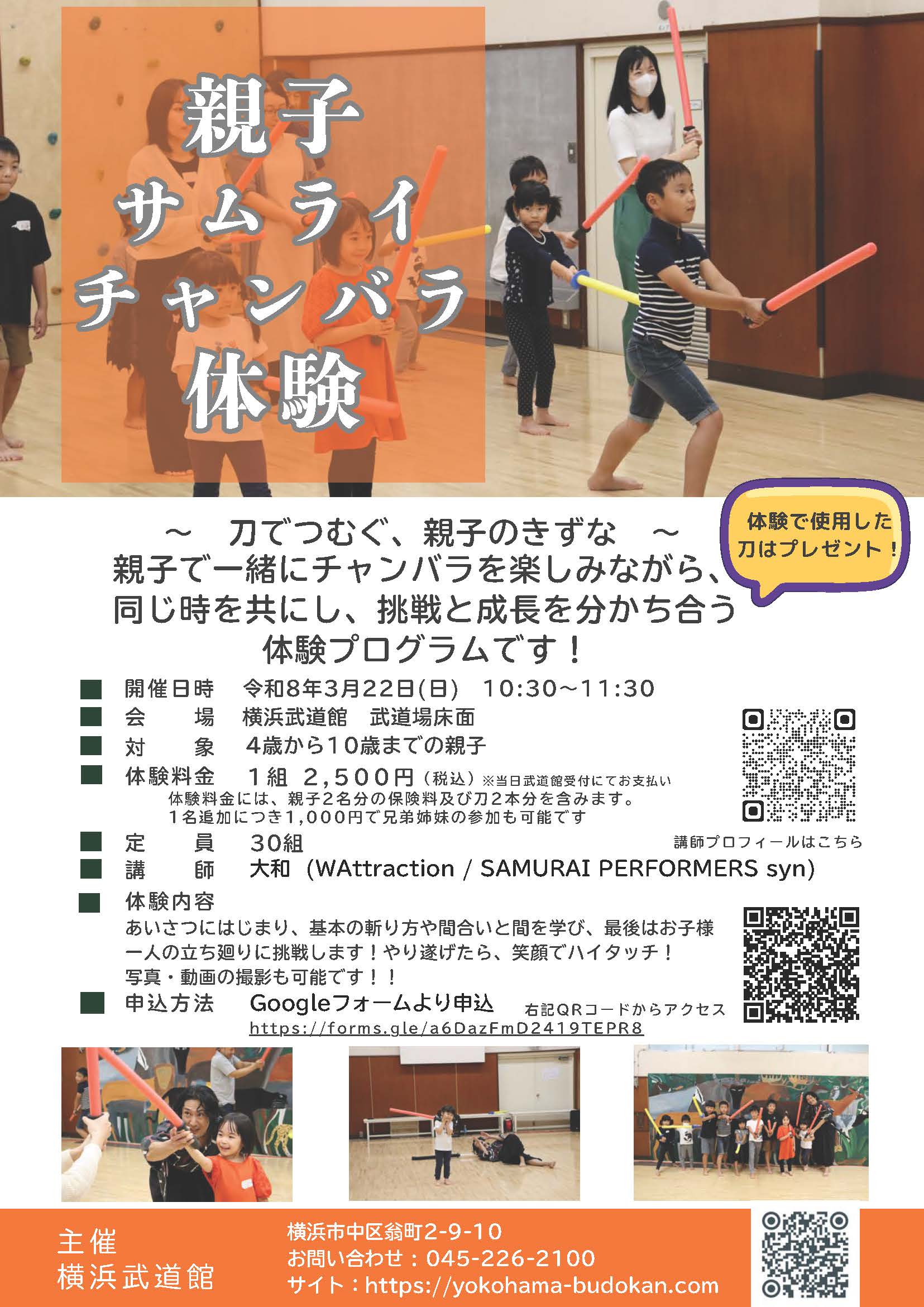 親子で一緒にチャンバラを楽しみながら、同じ時を共にし、挑戦と成長を分かち合う体験プログラムです!